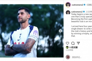 罗梅罗社媒写道:“今天对我们来说是新赛季的开始,对我而言这是一个真正特别的赛季,成为这家美妙俱乐部的第一队长是难以置信的荣誉。
